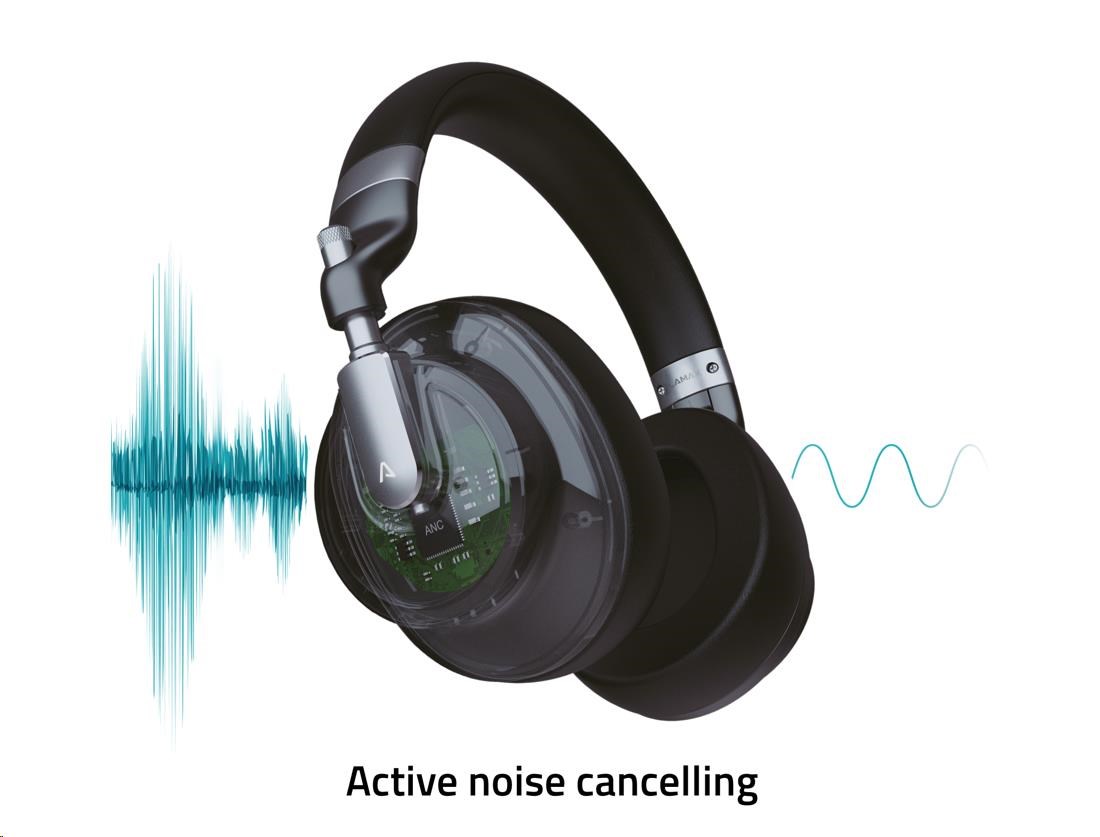 Rušný prostředí? Není problém. AMS čip analyzuje okolní hluk a pomocí protichůdných zvukových vln ho magicky vymaže. Navíc díky nejmodernější hybridní technologii s 2 mikrofony sluchátka nešumí, ani když nehrajou. Okolí ztlumí až o 30 dB.