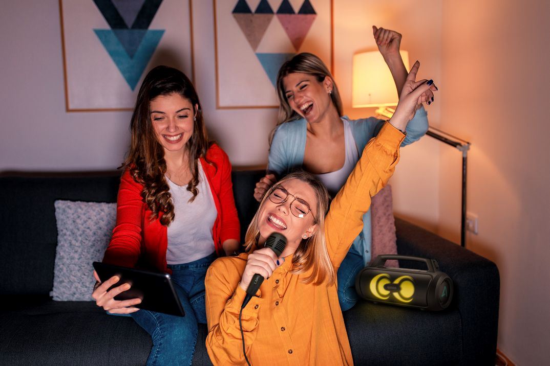 Ovládnite každú party. Súčasťou balenia reproduktora je mikrofón umožňujúci moderovanie alebo organizáciu karaoke, kedy si môžete zaspievať so svojimi idolmi. Hlasitosť si ľahko nastavíte.