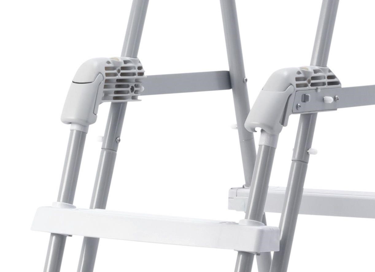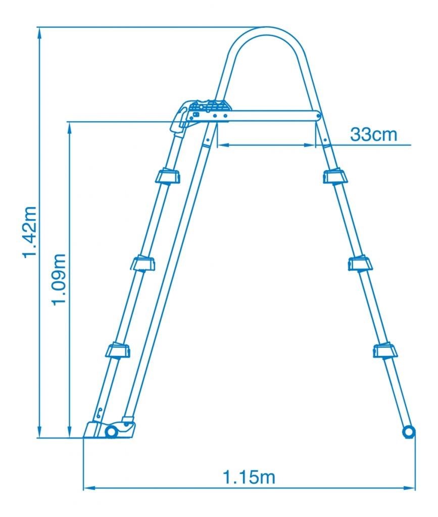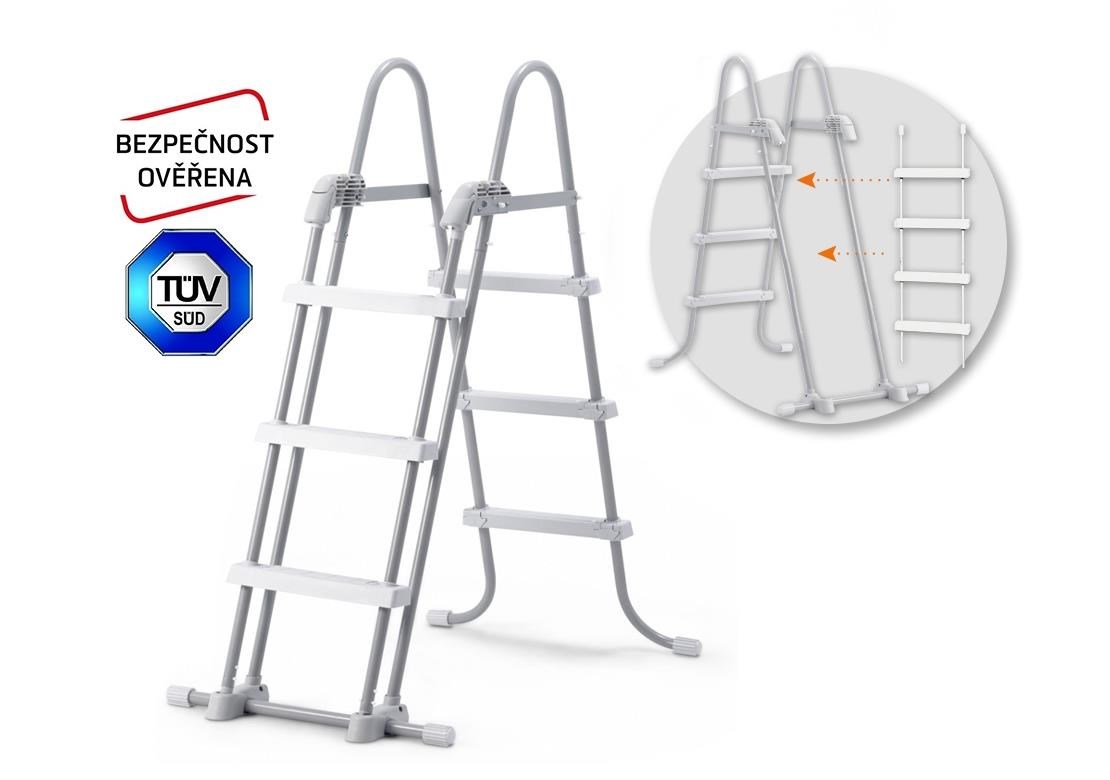 Bezpečnostné schodíky do bazénov do výšky 1,07 m.Schodíky majú odnímateľné stupienky - pri ich vybratí zabránite nekontrolovateľnému vstupu detí do bazéna. Maximálna nosnosť 136 kg.