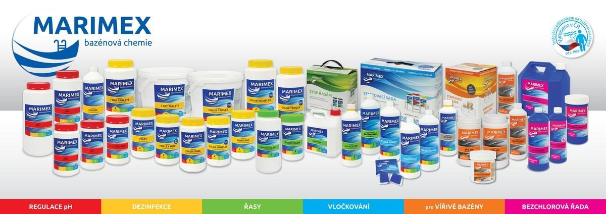 Všetky produkty bazénovej dezinfekcie Marimex sú vyvinuté, vyrábané a balené v Českej republike. Veľmi dôkladne sa kontroluje pôvod všetkých surovín a monitoruje priebeh ich spracovania.