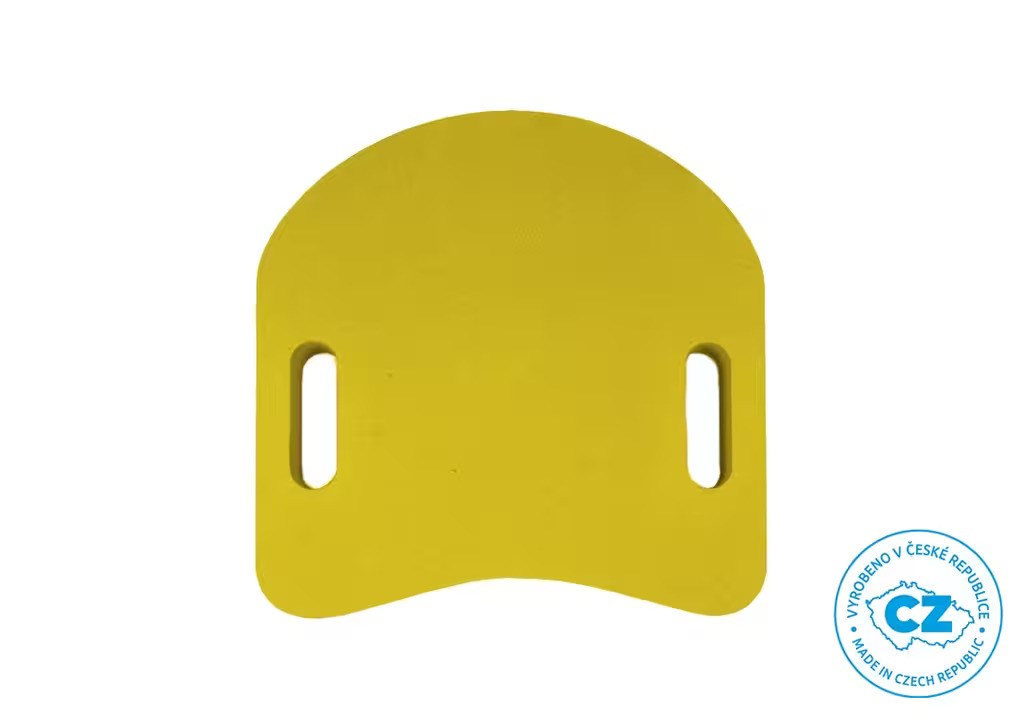 Plavecká deska pro výcvik plavání ve žluté barvě nabízí snadný úchop oběma rukama díky vykrojeným otvorům.