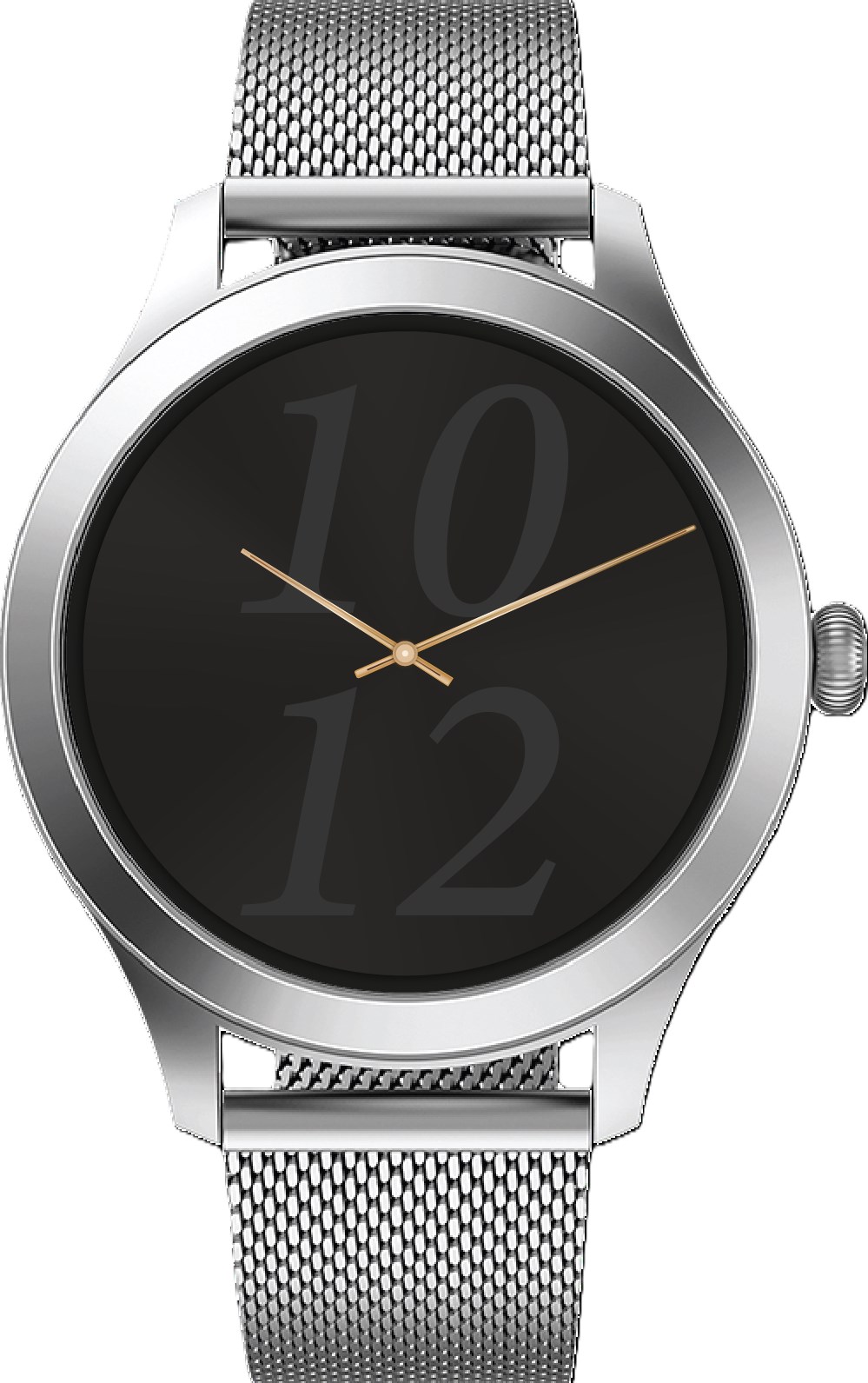 Vzhľad tradičných hodiniek, oceľové puzdro a jemne trblietavý náramok robia z týchto chytrých hodiniek štýlový doplnok každého outfitu.