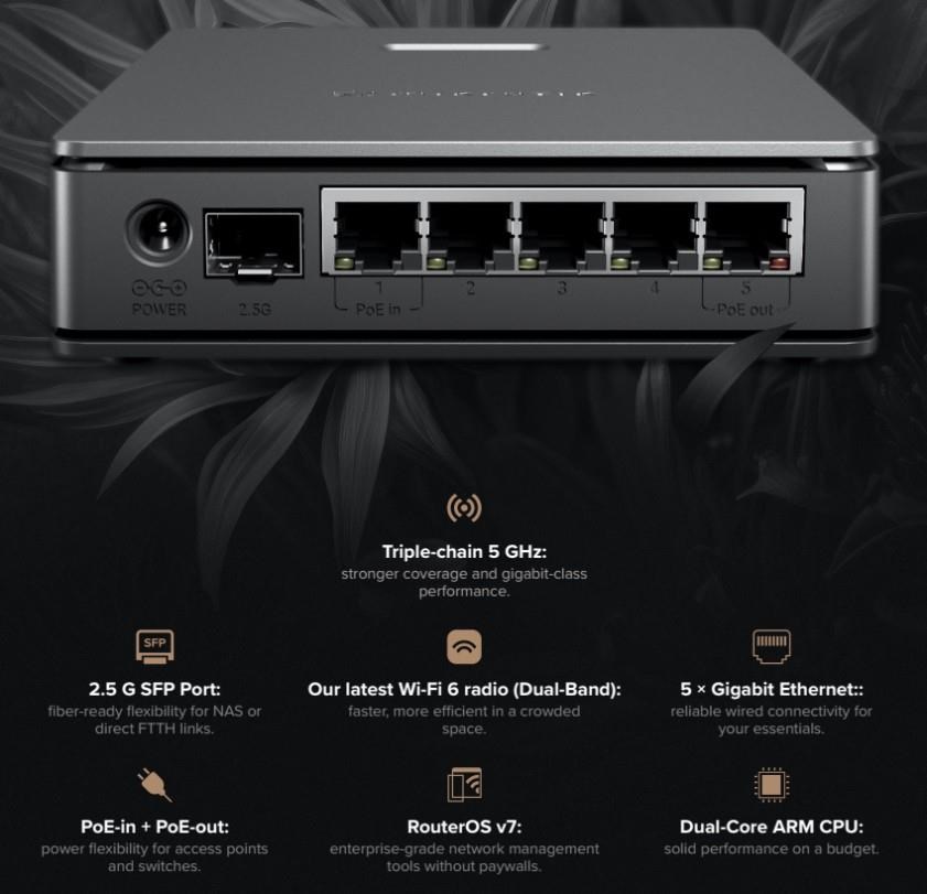Na rozdíl od jednoúčelových „herních“ přístupových bodů vám hAP ax S nabízí plný výkon, flexibilitu a funkční budoucnost v stále zdokonalovaném RouterOS v7.