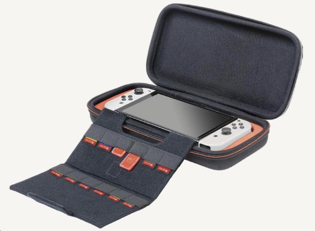 • Vymeniteľná vnútorná výstelka umožňuje prenášať v puzdre bezpečne aj konzolu Switch alebo Switch – OLED Model.