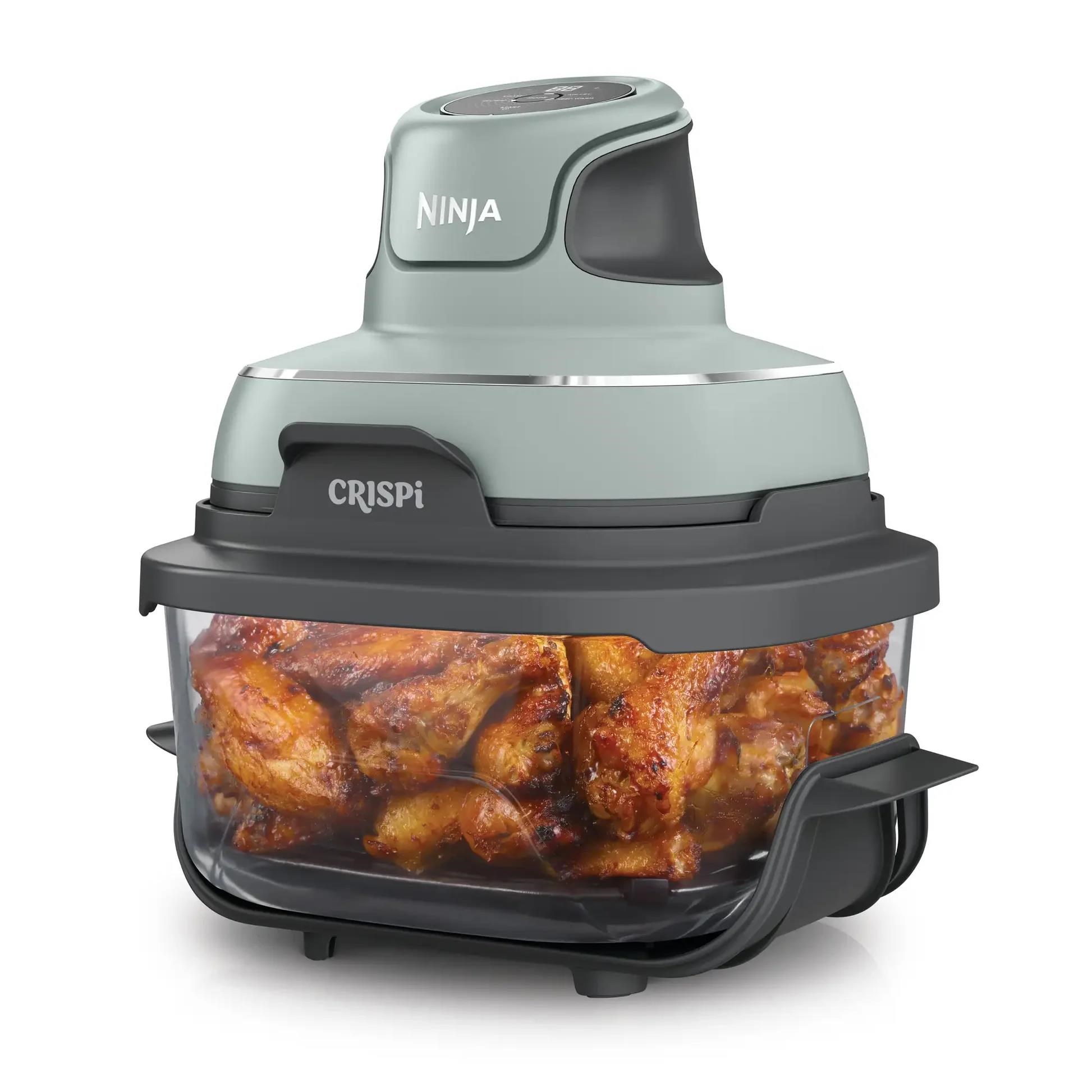 Ninja FN101EUSG Crispi, přenosná horkovzdušná fritéza, 4v1,zelená,příkon 1700 W, skleněné nádoby 1,4 l a 3,8 l, bez PFAS