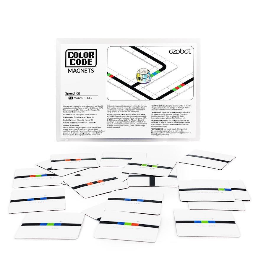 Rozširujúca magnetická sada Ozobot je kombináciou farebných kódov Ozobot a dielikov pre sledovanie trasy pomocou čiernej čiary. Umožňuje žiakom rozvíjať skúsenosti v širokom spektre zručností. Magnety s farebnými kódmi a čiarmi majú vhodnú veľkosť a ľahko sa používajú. Manipuluje sa s nimi jednoducho vďaka praktickým rozmerom a sú ideálne pre mladých žiakov, ktorí práve začínajú objavovať svet interaktívneho kódovania.Kvalita a dlhá životnosť