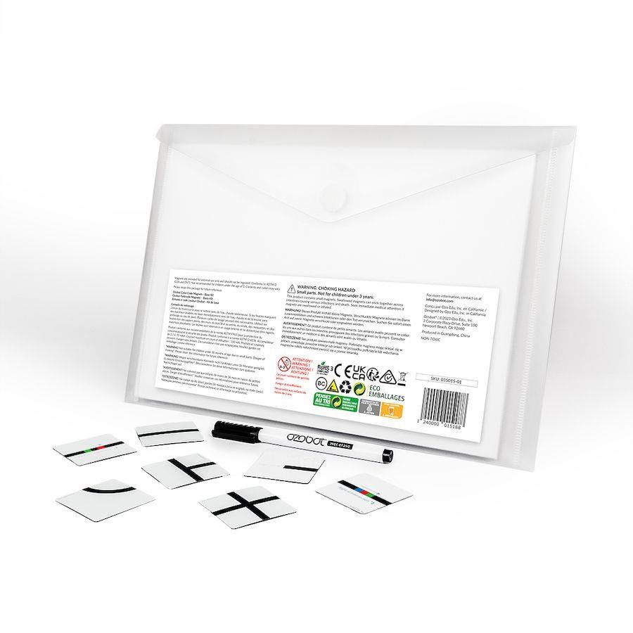 Magnetická sada Ozobot predstavuje zábavný a interaktívny spôsob, ako učiť žiakov princípy kódovania už od predškolského veku. Základná sada obsahuje magnetickú tabuľu, fixku (odstrániteľnú vodou) a k tomu 36 dielikov skladačky, ktoré v spojení s robotom Ozobot Evo či Bit+ umožňujú praktické učenie základných aj pokročilých konceptov v kódovaní a programovaní. Študenti spoločne zostavia trasu pomocou magnetov, ktoré umiestnia na hraciu plochu podľa požadovaných úloh. Naučia sa pritom veľa nových vecí a navyše sa skvele zabavia.Experimentujte so sledovaním, logikou a hľadaním riešení úloh