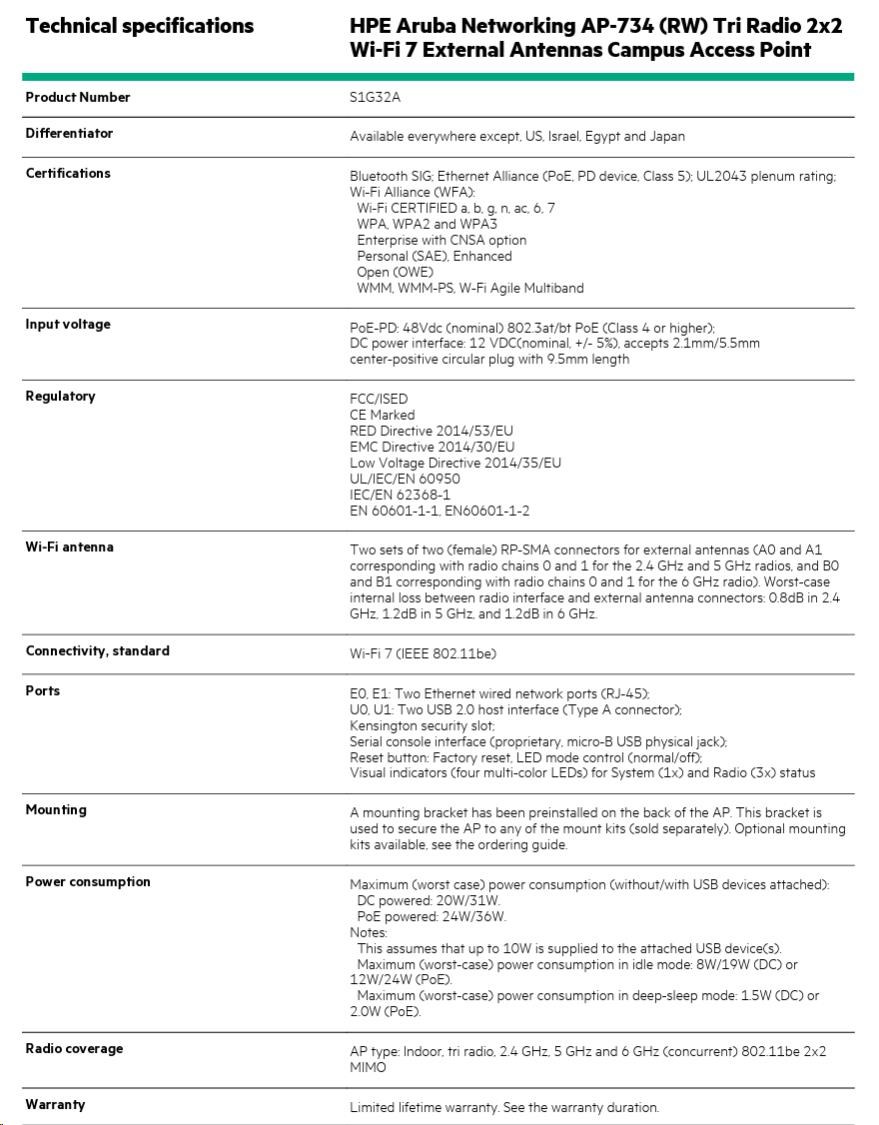 HPE Aruba Networking AP-734 (RW) Tri Radio 2x2 Wi-Fi 7 External Antennas Campus Access Point Kód: 1881267, Part Number: S1G32A, ID: 1765668, Záruka: 99R Zobraziť cenu Dostupnosť: Obvykle 12 dní Prihlásiť sa Porovnať
