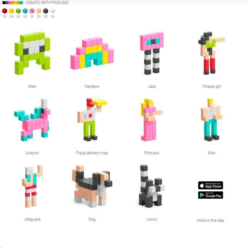 DIZAJNOVÁ SÉRIA PIXIO-200 OBSAHUJE 200 BLOKOV PIXIO V ÔSMICH DOKONALE ZLADENÝCH FARBÁCH, KTORÉ