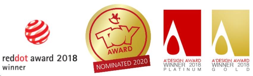 - Certifikovaný produkt s oceneniami za dizajn – Red Dot Design Award, Toy Award, A ´DESIGN
