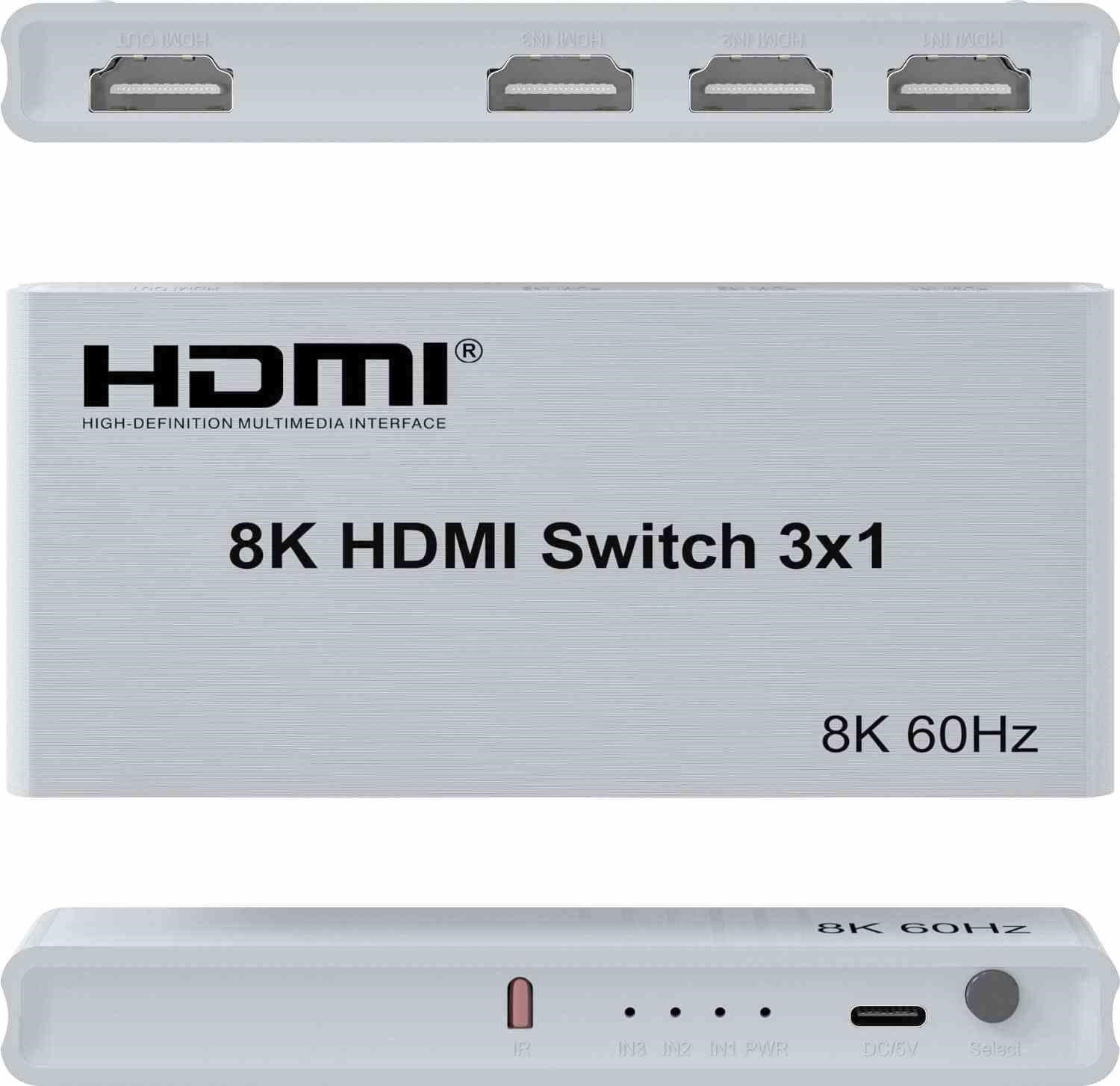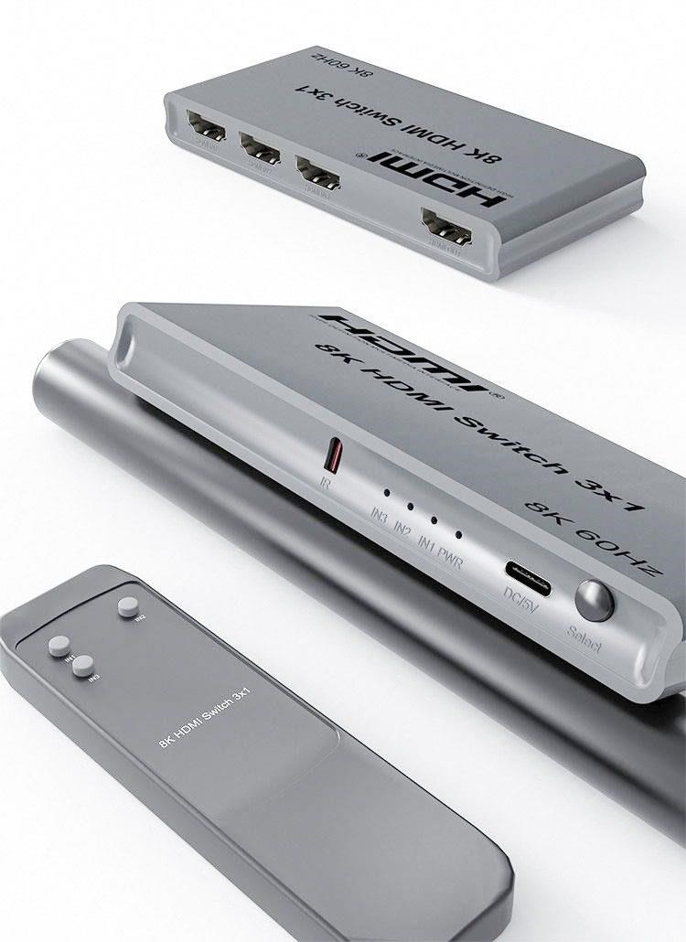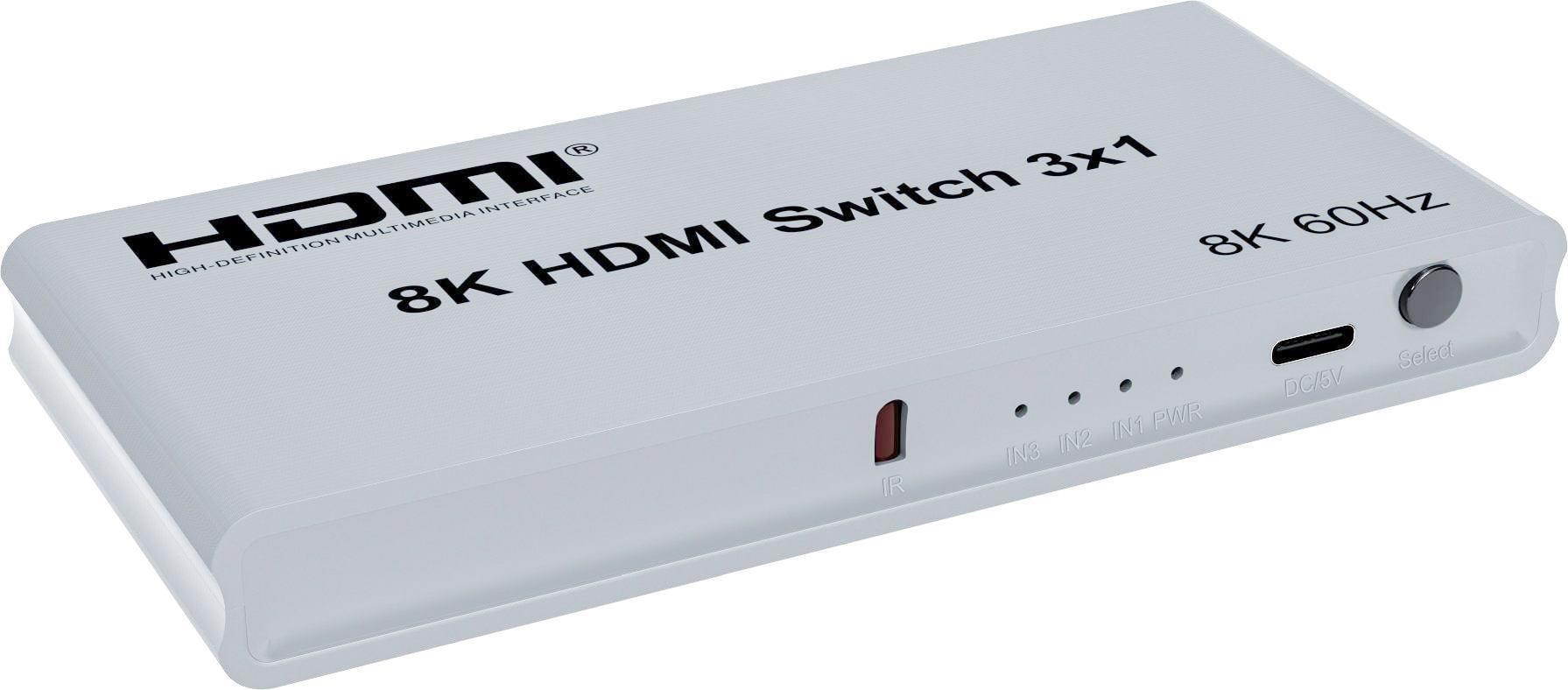 PremiumCord 8K@60Hz, 4K@144Hz HDMI prepínač 3:1 s diaľkovým ovládačom