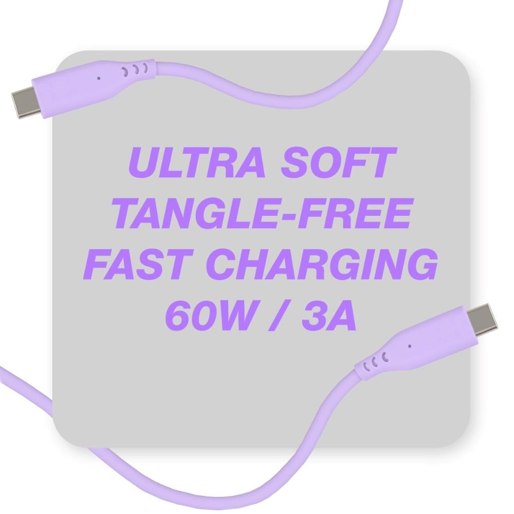 PREMIUMCORD Kabel USB-C na USB-C, 60W, 480Mbps, silikonový, fialový, 1,5m