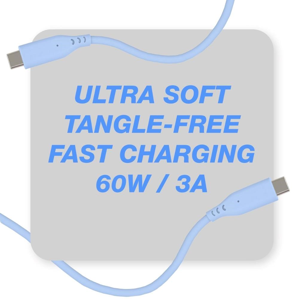 PREMIUMCORD Kabel USB-C na USB-C, 60W, 480Mbps, silikonový, modrý, 1,5m