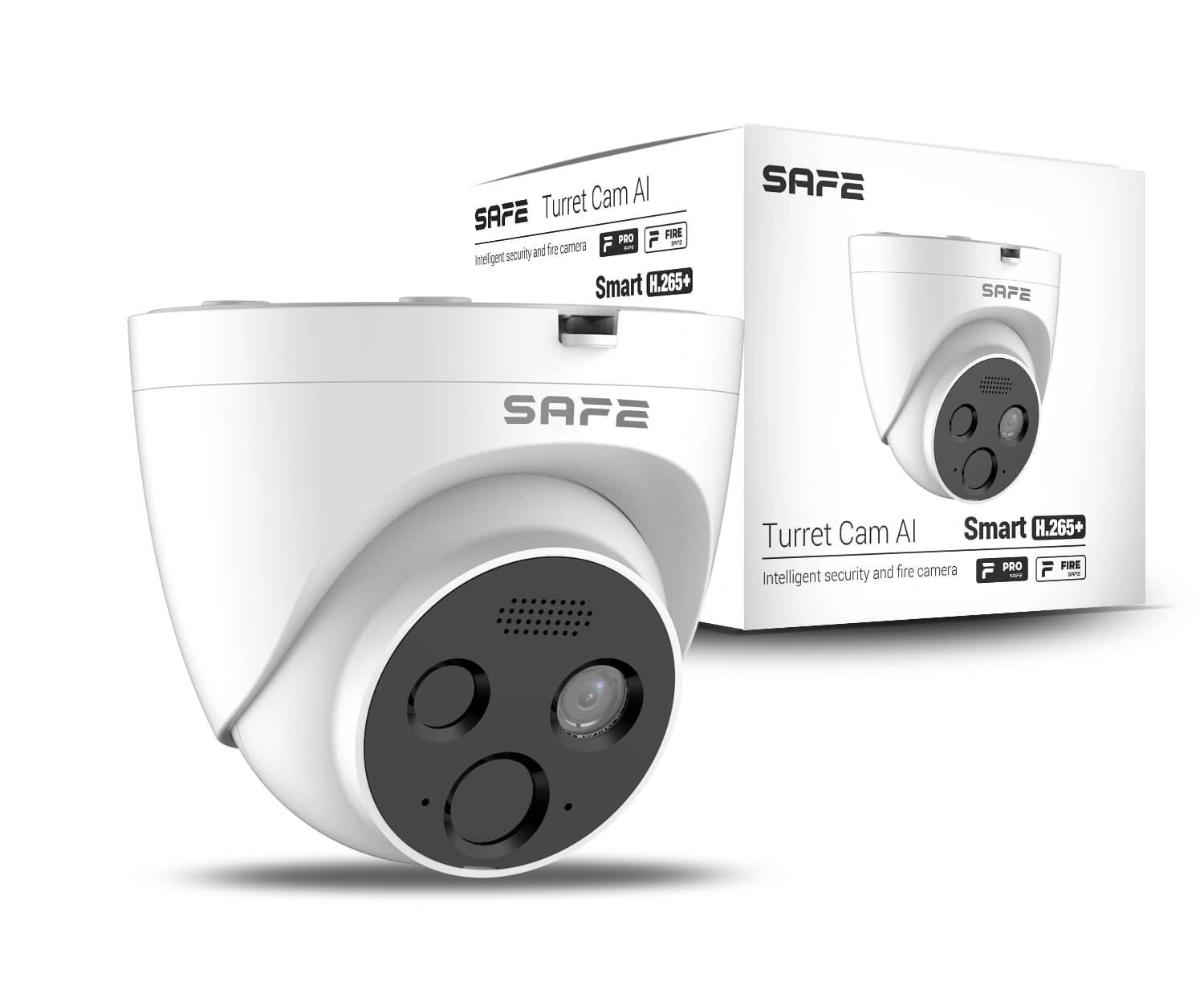 SAFE Turret Cam AI je všestranná síťová IP termokamera kombinující požadavky jak v oblasti požární ochrany, tak zabezpečení, video verifikace nebo dohledu nad monitorovaným prostorem.Disponuje dvěma senzory a řadou pokročilých funkcí jako je detekce plamene a teploty, video verifikace s vysokým rozlišením, interkom, inteligentní vizuální a akustické varování nebo IR přísvit nočního vidění. Kamera může pracovat zcela autonomně, jako součást požárního systému v aplikaci FireSAFE nebo jako součást zabezpečovacího systému a aplikace ProSAFE.