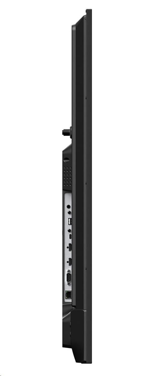Uhlopriečka obrazovky:65"; Technológia TV:LED; Rozlíšenie:Ultra HD 4k 3840x2160; Rozhranie:USB-C 3.2, HDMI, VGA, USB, 3.5mm Jack, LAN, RS-232; Formát obrazovky:16:9; Svietivosť (v nt):350; VESA:400 x 400; Doba prevádzky:16/7; Energetická trieda:F