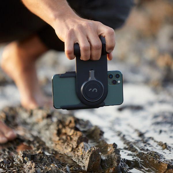 Stáva sa vám, že na konci dňa plného nahrávania videa a fotografií cítite napätie v zápästí? Koľkokoľvek je telefón praktickým pomocníkom, jeho tvar z ergonomického hľadiska jednoducho nie je ideálny. A to najmä v porovnaní s zrkadlovkou. Práve tento problém prekonáva sada ProGrip od ShiftCam - sada, vďaka ktorej získate oveľa pohodlnejšie a bezpečnejšie držanie vášho smartphonu. Presný tvar a výber materiálov je dotažený do najmenších detailov. Nechýba tak opierka pre palec a ergonomické zaoblenie, aby bol tlak vyvíjaný vašou dlánou rovnomerne rozložený. Odolná povrchová úprava rukoväte zabraňuje jej ulepeniu a opotrebeniu v priebehu času. Vysoko kvalitný gumený potah je protisklzový, odolný voči potu a zároveň mäkký na dotyk.Pripravená bezdrôtová powerbanka aj stojanček v jednom