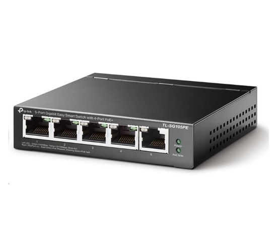 TP-Link Easy Smart switch TL-SG105PE (5xGbE, 4xPoE+, 65W, fanless)