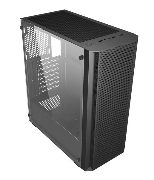 Prevedenie skrine:Midi Tower; Farba skrine:Čierna; Počet pozícií 3.5" (HDD):2; Počet interných pozícií 2.5":2; Vybavenie PC skrinky:Predný Audio panel, Predný USB panel, Priehľadná bočnice